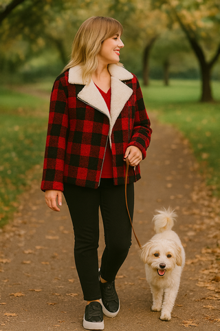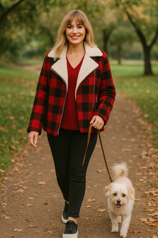Cozy Gingham Sherpa Lined Zip Up Moto
